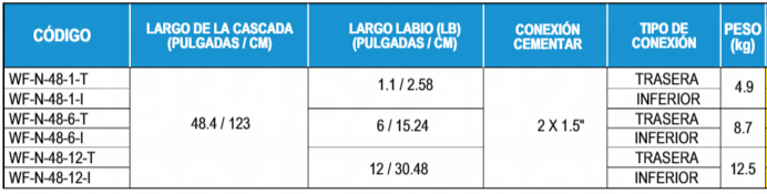 Amplia gama de modelos disponibles: 12", 18", 24", 36" y 48" de largo.